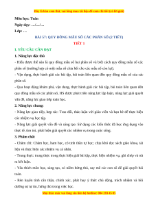 TIẾT 1: QUY ĐỒNG MẪU SỐ CÁC PHÂN SỐ.