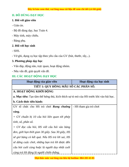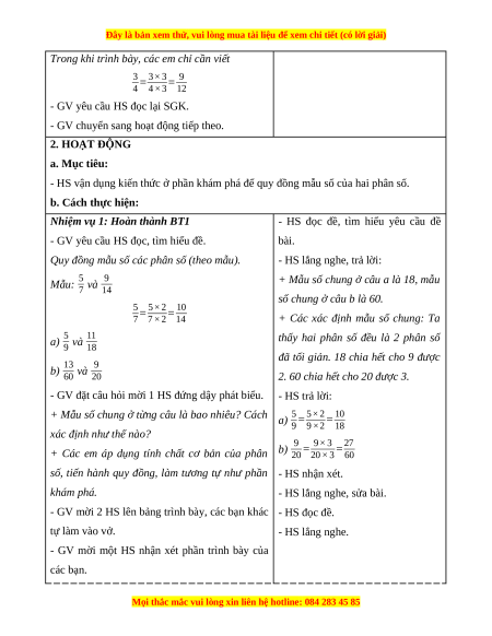 Giáo án Quy đồng mẫu số các phân số Toán 4 Kết nối tri thức