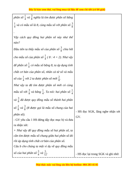 - Hiểu được thế nào là quy đồng mẫu số hai phân số và biết cách quy đồng mẫu số các