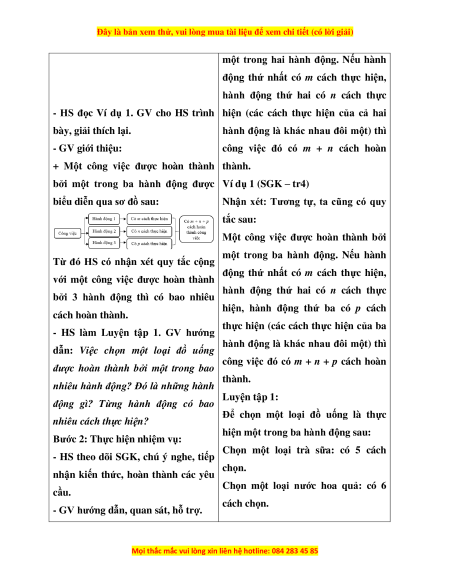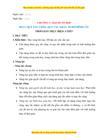 Giáo án Quy tắc cộng. Quy tắc nhân. Sơ đồ hình cây Toán 10 Cánh diều