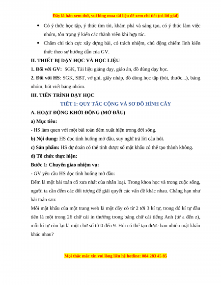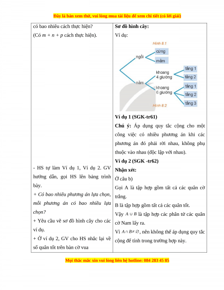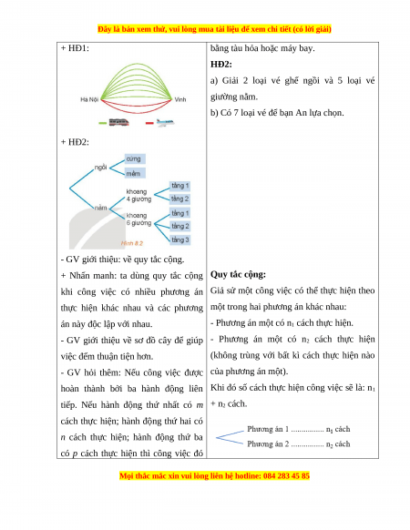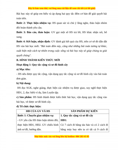 - HS nêu được quy tắc cộng, vận dụng quy tắc cộng và sơ đồ hình cây vào bài toán đơn giản. b) Nội dung: