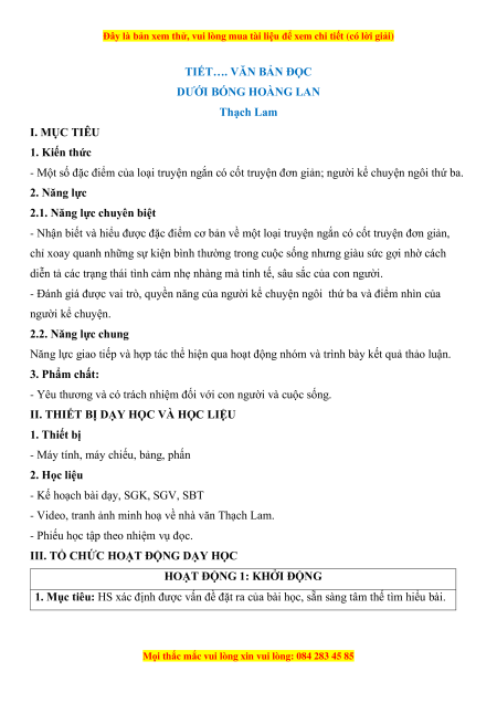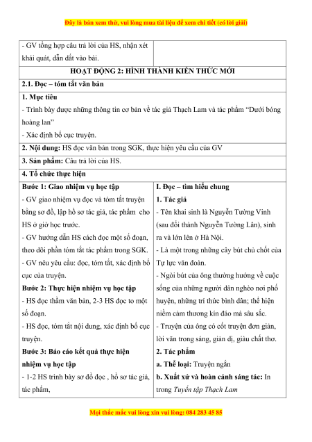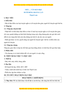 DƯỚI BÓNG HOÀNG LAN Thạch Lam I. MỤC TIÊU 1. Kiến thức