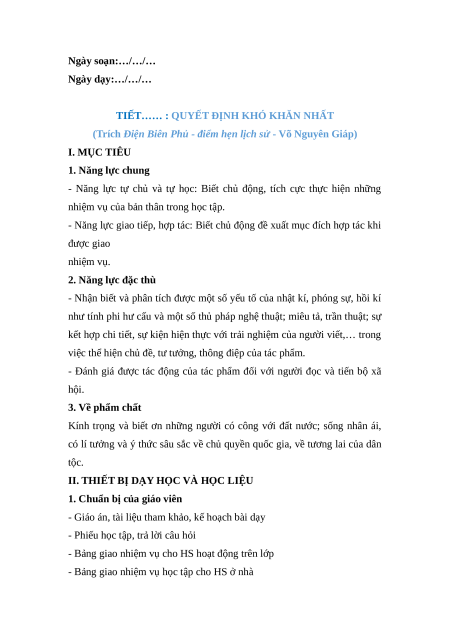 Giáo án Quyết định khó khăn nhất Ngữ Văn 12 Cánh diều
