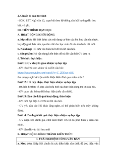 huy động tri thức nền, tạo tâm thế cho học sinh đi vào tìm hiểu bài mới.