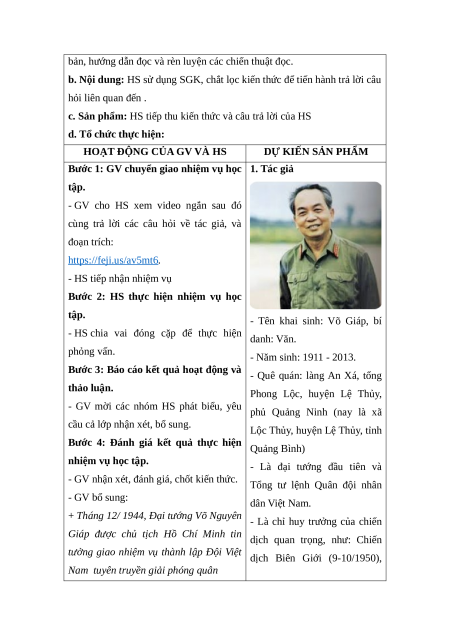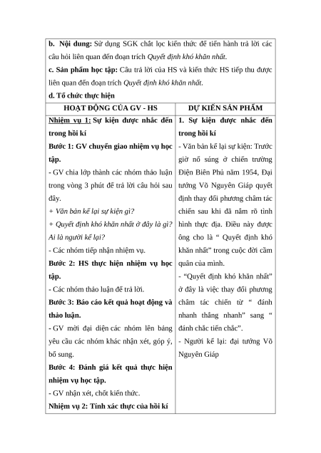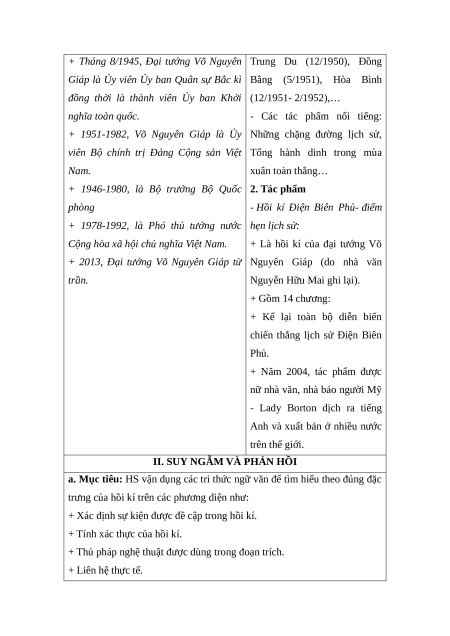(Trích Điện Biên Phủ - điểm hẹn lịch sử - Võ Nguyên Giáp) I. MỤC TIÊU 1. Năng lực chung