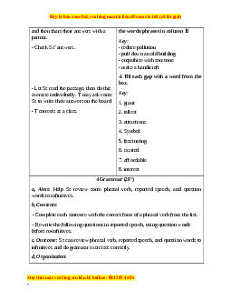 a, Aims: Help Ss review some phrasal verb, reported speech, and question words to infinitives. b, Contents: