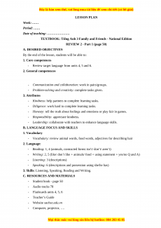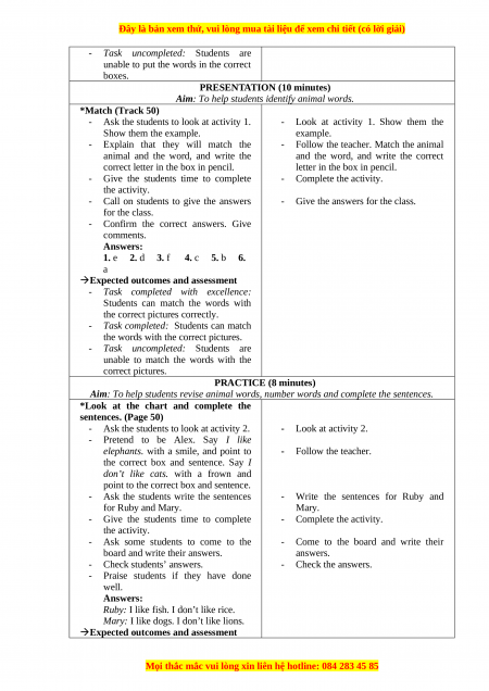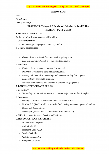 C. RESOURCES AND MATERIALS - Student book - page 50 - Audio tracks 78 - Flashcards units 4, 5, 6 - Teacher’s Guide - Website sachso.edu.vn - Computer, projector, ….