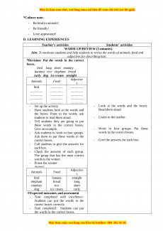 *Culture note: - Be kind to animals! - Be friendly! - Love appearance! D. LEARNING EXPERIENCES Teacher’s activities Students’ activities