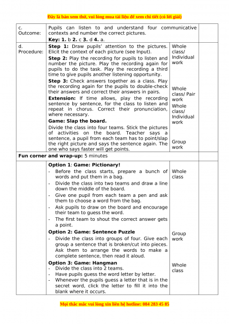 Step 1: Draw pupils’ attention to the pictures. Whole