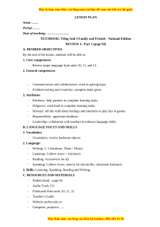 Flashcards from units 10, 11, 12 - Teacher’s Guide - Website sachso.edu.vn - Computer, projector, ….