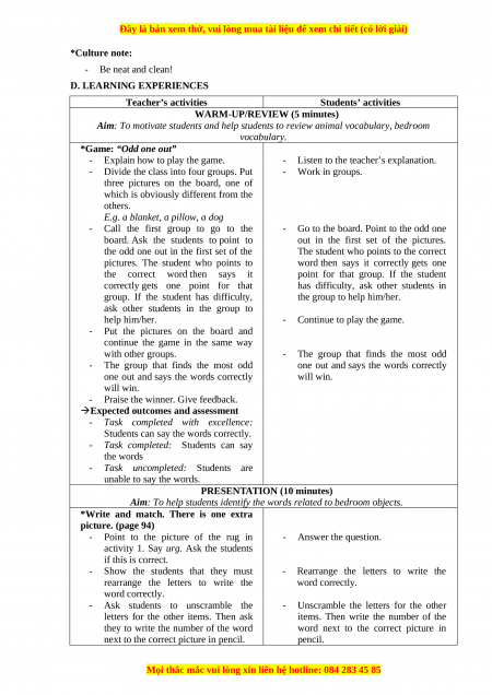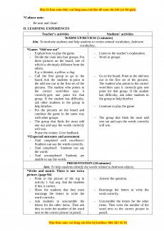 *Culture note: - Be neat and clean! D. LEARNING EXPERIENCES Teacher’s activities Students’ activities