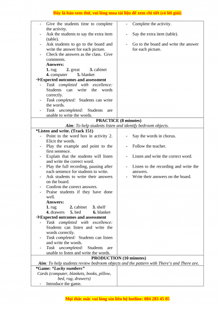 Speaking: 5 (there is/are, some/a lot of/a/an/the, classroom furniture)