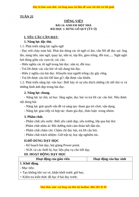 BÀI ĐỌC 1: RỪNG GỖ QUÝ (T1+2) I. YÊU CẦU CẦN ĐẠT: