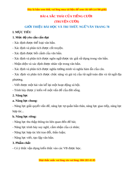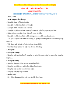 Đây là bản xem th , vu ử i lòng mua tài li u ệ đ xe ể m chi ti t ế (có l i ờ gi i ả ) BÀI 4. SẮC THÁI C A Ủ TI N Ế G CƯ I Ờ (TRUY N Ệ CƯ I Ờ ) GI I Ớ THI U Ệ BÀI H C Ọ VÀ TRI TH C Ứ NG Ữ VĂN TRANG 78 I. M C Ụ TIÊU