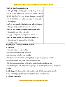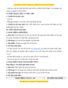 ụ chia sẻ suy nghĩ, c m ả xúc c a b ủ n ả thân. - T chi ừ a sẻ c a ủ HS, GV d n d ẫ t ắ vào bài h c m ọ i ớ . B. HOẠT Đ N Ộ G HÌNH THÀNH KI N Ế TH C Ứ Hoạt đ ng 1 ộ : Tìm hi u gi ể i ớ thi u bài ệ h c ọ a. Mục tiêu: N m ắ đư c n ợ i ộ dung c a bài ủ h c. ọ b. N i ộ dung: HS s d ử ng ụ SGK, ch t ắ l c ki ọ n ế th c ứ đ t ể i n hành t ế r l ả i ờ câu h i ỏ . c. Sản phẩm h c t ọ p: ậ HS ti p t ế hu ki n t ế h c và ứ câu tr l ả i ờ c a ủ HS. d. T ch ổ ức thực hi n: ệ HOẠT Đ N Ộ G C A Ủ GV - HS D K Ự IẾN SẢN PHẨM M i ọ thắc m c