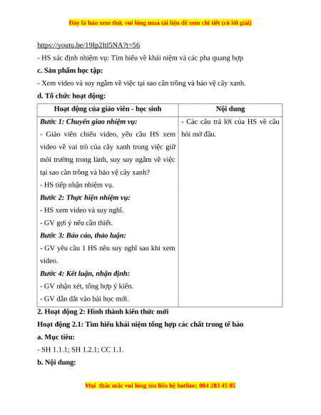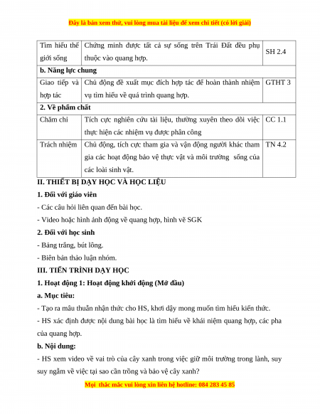 - HS xác định được nội dung bài học là tìm hiểu về khái niệm quang hợp, các pha của quang hợp. b. Nội dung: