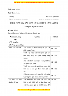 BÀI 16: PHÂN GIẢI CÁC CHẤT VÀ GIẢI PHÓNG NĂNG LƯỢNG