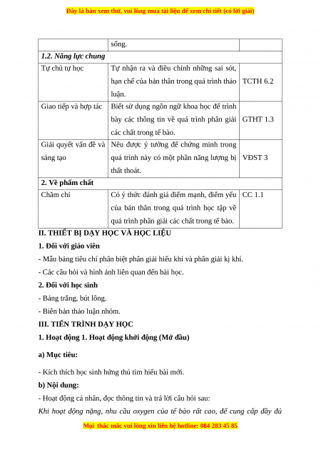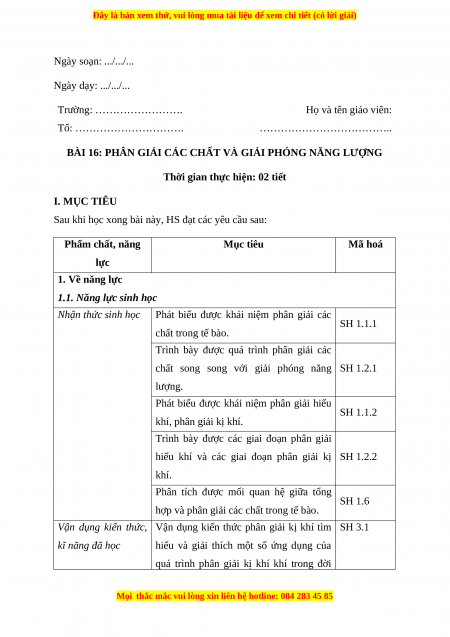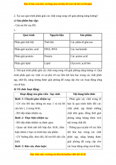 Giáo án Sinh học 10 Bài 16 (Chân trời sáng tạo): Phân giải các chất và giải phóng năng lượng