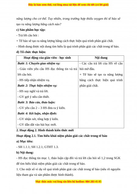 Hoạt động 2.1. Tìm hiểu khái niệm phân giải các chất trong tế bào a) Mục tiêu: