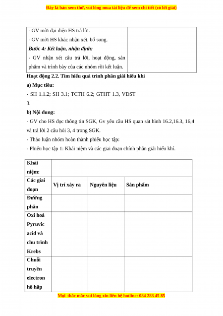 - Mẫu bảng tiêu chí phân biệt phân giải hiếu khí và phân giải kị khí.
