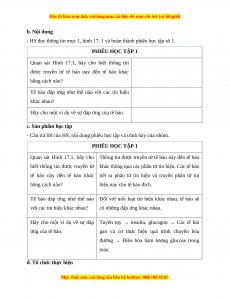 - HS đọc thông tin mục 1, hình 17. 1 và hoàn thành phiếu học tập số 1. PHIẾU HỌC TẬP 1