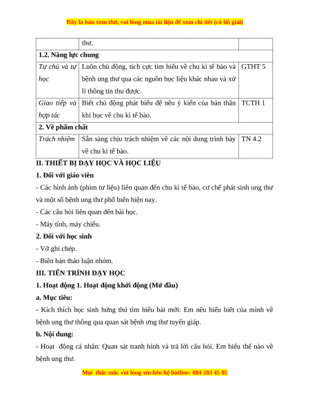 khi học về chu kì tế bào. 2. Về phẩm chất