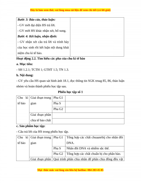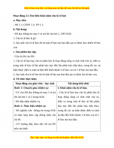 Hoạt động 2.1.Tìm hiểu khái niệm chu kì tế bào a. Mục tiêu: - SH 1.1; GTHT 1.5; TN 1.3. b. Nội dung:
