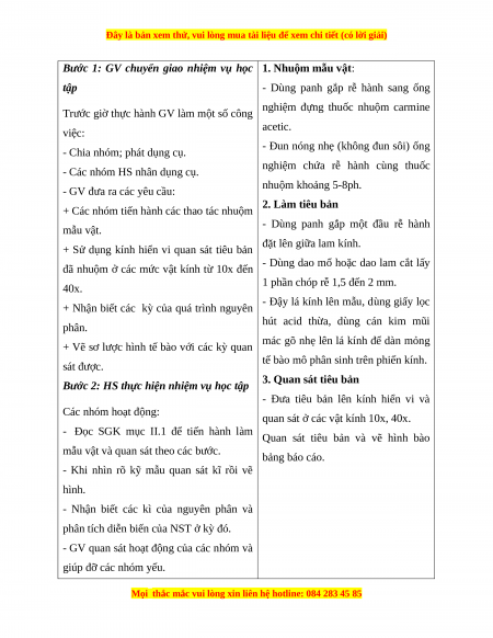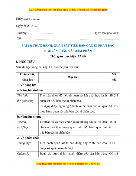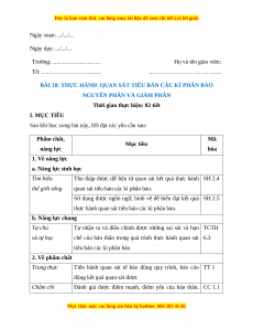 BÀI 18: THỰC HÀNH: QUAN SÁT TIÊU BẢN CÁC KÌ PHÂN BÀO