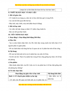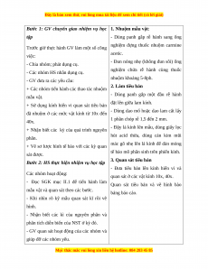 - GV chuẩn bị các dụng cụ, mẫu vật và hóa chất theo gợi ý trong SGK.