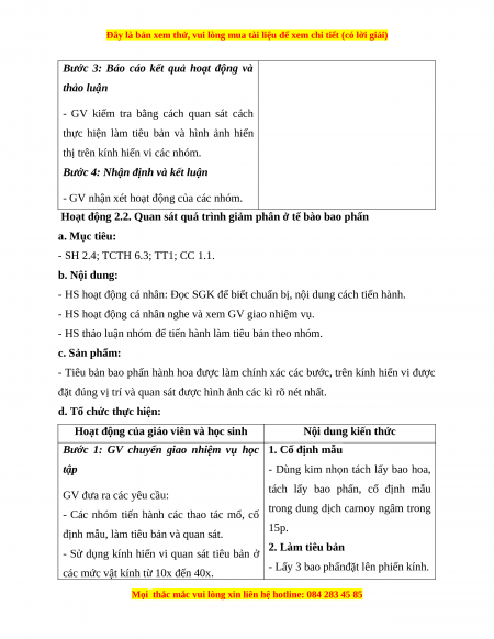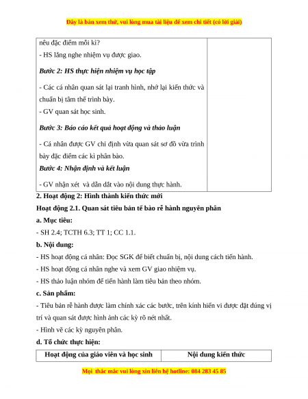 Hoạt động 2.1. Quan sát tiêu bản tế bào rễ hành nguyên phân a. Mục tiêu: