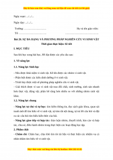Bài 20. SỰ ĐA DẠNG VÀ PHƯƠNG PHÁP NGHIÊN CỨU VI SINH VẬT