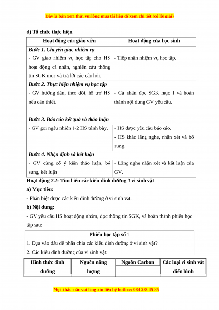 - Phân biệt được các kiểu dinh dưỡng ở vi sinh vật.