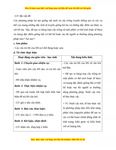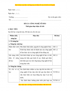 Giáo án Sinh học 10 Bài 21 (Chân trời sáng tạo): Công nghệ tế bào