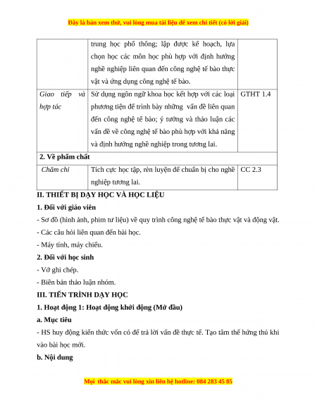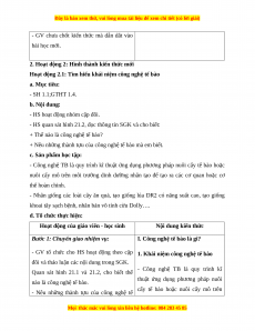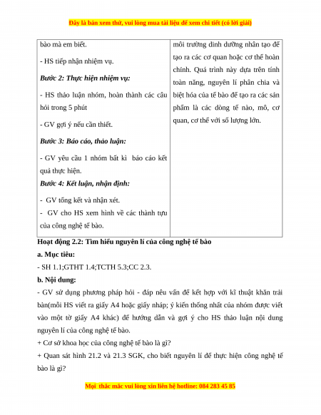 Hoạt động 2.1: Tìm hiểu khái niệm công nghệ tế bào a. Mục tiêu: - SH 1.1;GTHT 1.4. b. Nội dung: