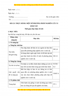 vật, lựa chọn được phương pháp phù hợp để nghiên cứu vi sinh vật. 2. Về phẩm chất