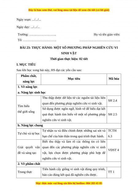BÀI 23: THỰC HÀNH: MỘT SỐ PHƯƠNG PHÁP NGHIÊN CỨU VI SINH VẬT