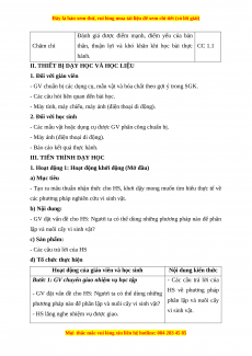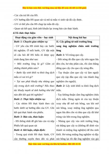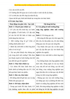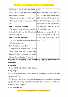 nghiệm chứa môi trường lỏng. Ở mỗi bước, GV đặt một số câu hỏi để HS hiểu