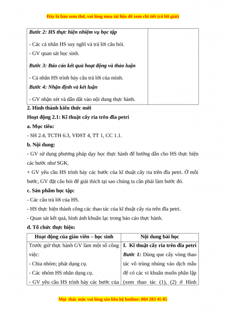 Hoạt động 2.1: Kĩ thuật cấy ria trên đĩa petri a. Mục tiêu: