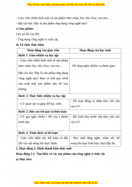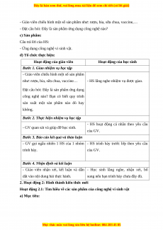 Hoạt động 2.1: Tìm hiểu về các sản phẩm của công nghệ vi sinh vật a) Mục tiêu: