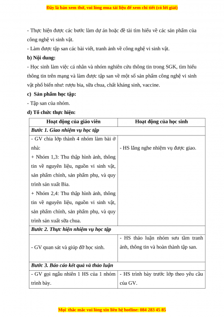 - Thực hiện được các bước làm dự án hoặc đề tài tìm hiểu về các sản phẩm của công nghệ vi sinh vật.