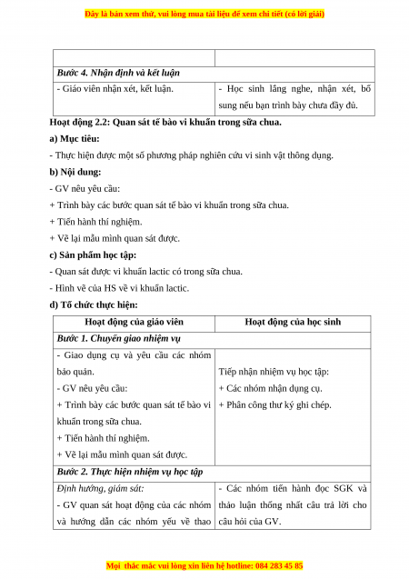 Hoạt động 2.2: Quan sát tế bào vi khuẩn trong sữa chua.