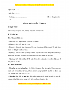 Giáo án Sinh học 10 Bài 24 (Kết nối tri thức): Khái quát về virus