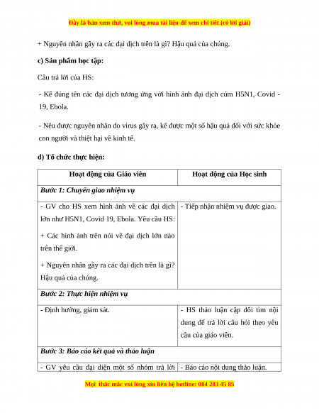 - GV cho HS xem hình ảnh về các đại dịch lớn như H5N1, Covid 19, Ebola. Yêu