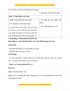Hoạt động 2.1: Tìm hiểu khái niệm và các đặc điểm chung của virus a) Mục tiêu: