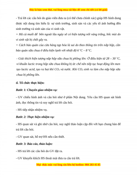 - Giải thích hiện tượng nắp hộp sữa chua bị phồng lên: Ở điều kiện từ 28 – 30 oC,
