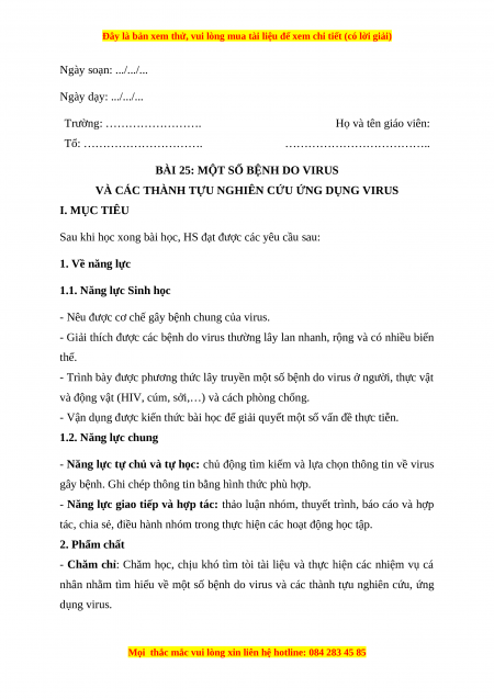 BÀI 25: MỘT SỐ BỆNH DO VIRUS