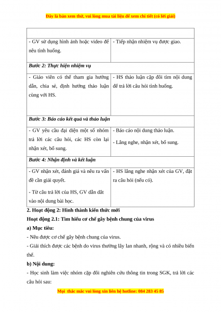 Hoạt động 2.1: Tìm hiểu cơ chế gây bệnh chung của virus a) Mục tiêu: