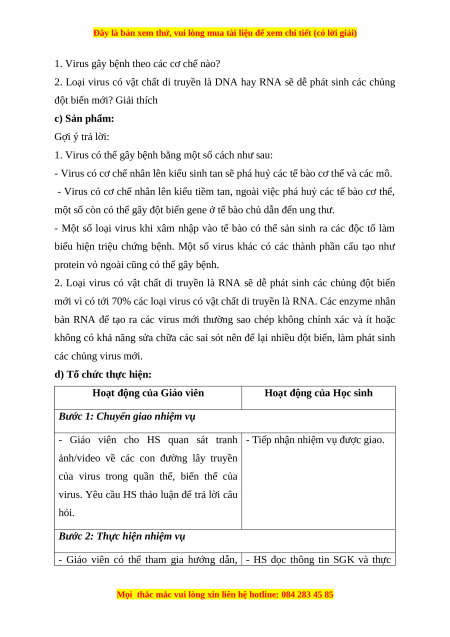 - Giải thích được các bệnh do virus thường lây lan nhanh, rộng và có nhiều biến thể. b) Nội dung: