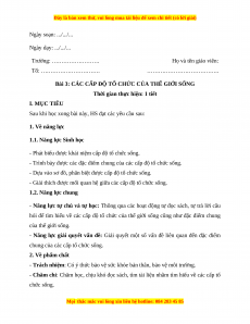 Giáo án Sinh học 10 Bài 3 (Kết nối tri thức): Các cấp độ tổ chức của thế giới sống