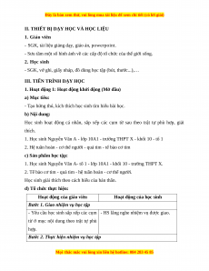 II. THIẾT BỊ DẠY HỌC VÀ HỌC LIỆU 1. Giáo viên